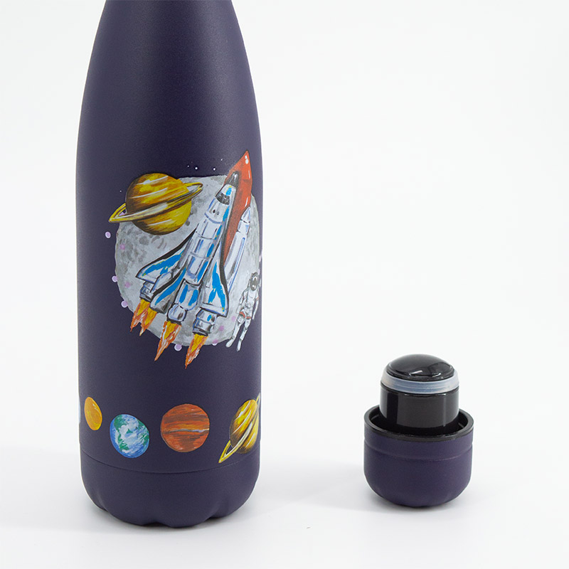 Embarquez pour une aventure spatiale avec notre gourde isotherme cosmique ! Fabriquée en acier inoxydable de haute qualité, cette gourde est à la fois durable et légère, parfaite pour vous accompagner dans toutes vos explorations.
